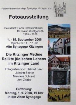 Fotoausstellung "Die Kitzinger Medine, Relikte jüdischen Lebens im Kitzinger Land" vom 1. bis 15. Sept. 2008, Alte Synagoge Kitzingen, Großer Saal, täglich 11 - 17 Uhr